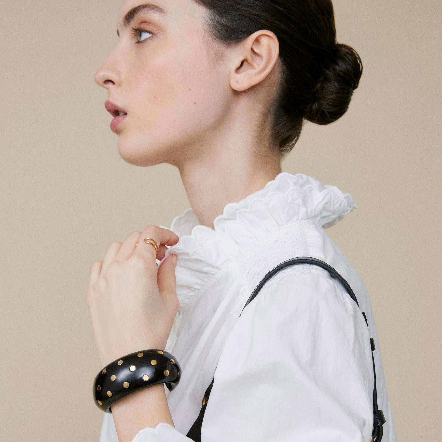 Detalles: Anillo fino, redondo y de doble alma, brazalete de fina textura. Acabado brillante. Ajustable.Talla única. Composición: Latón bañado en oro. Dimensiones: Ajustable