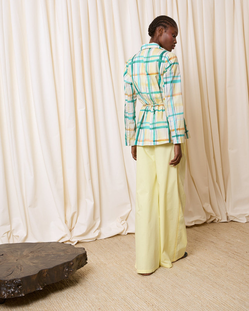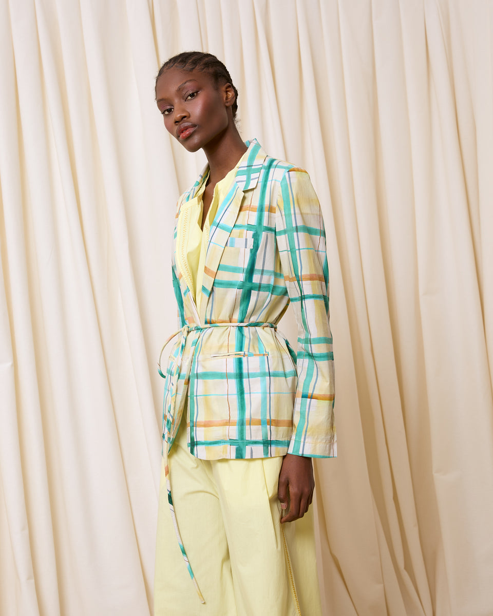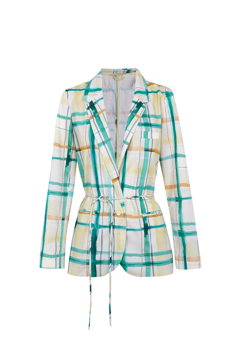 DESCRIPCIÓN: Blazer de popelín de algodón estampada en cuadros verdes y amarillos. COMPOSICIÓN: 100% Algodón