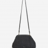 Bolso elaborado en una mezcla de algodón trenzado y piel caprina de color negro. Con forro interior 100% algodón. Diseño estructurado con cierre metálico superior y asa larga ajustable de piel, para llevar al hombro o cruzado.. Detalle logo. Medidas: 23×28 cm.