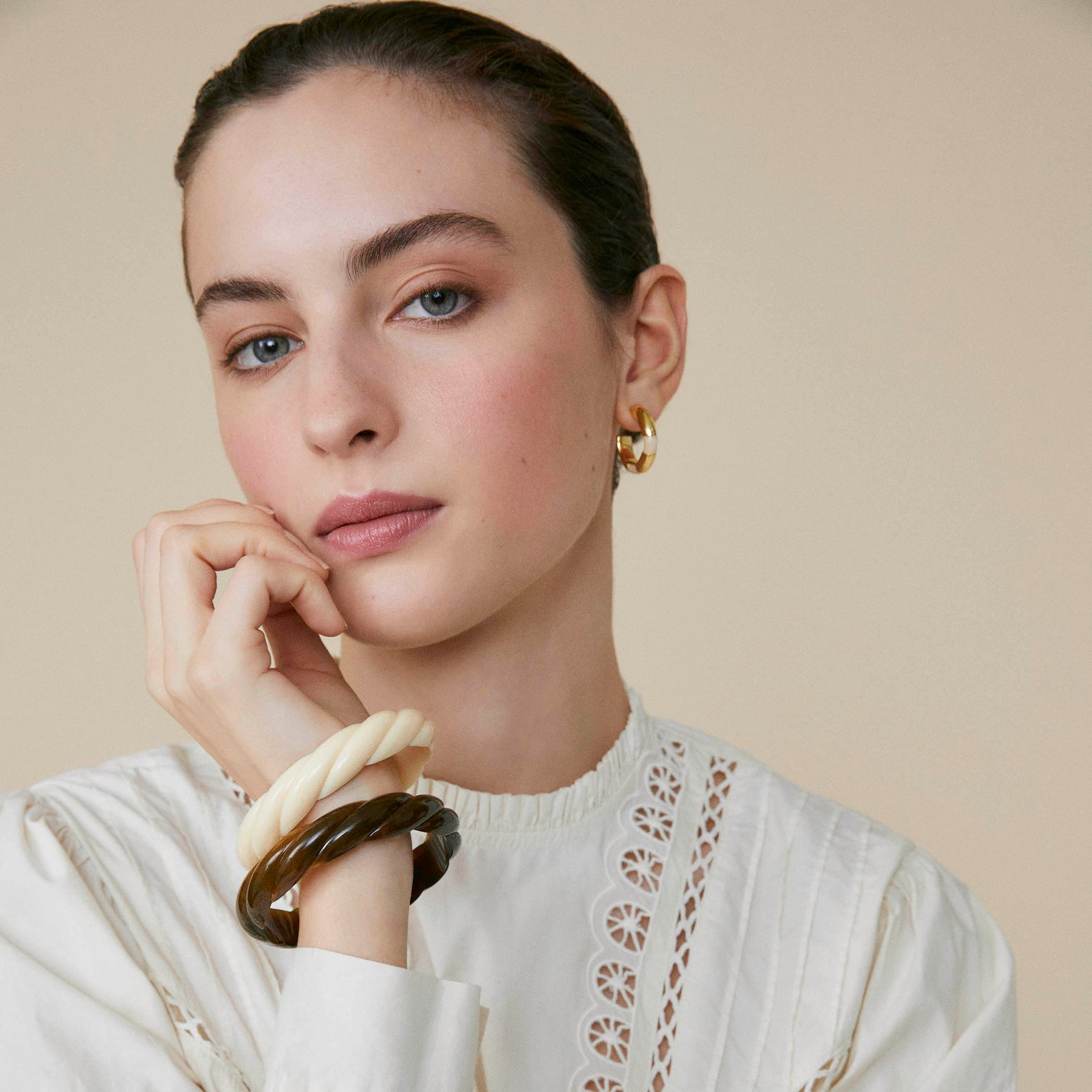 Detalles: Brazalete fino y retorcido de acetato de color liso. Acabado brillante.