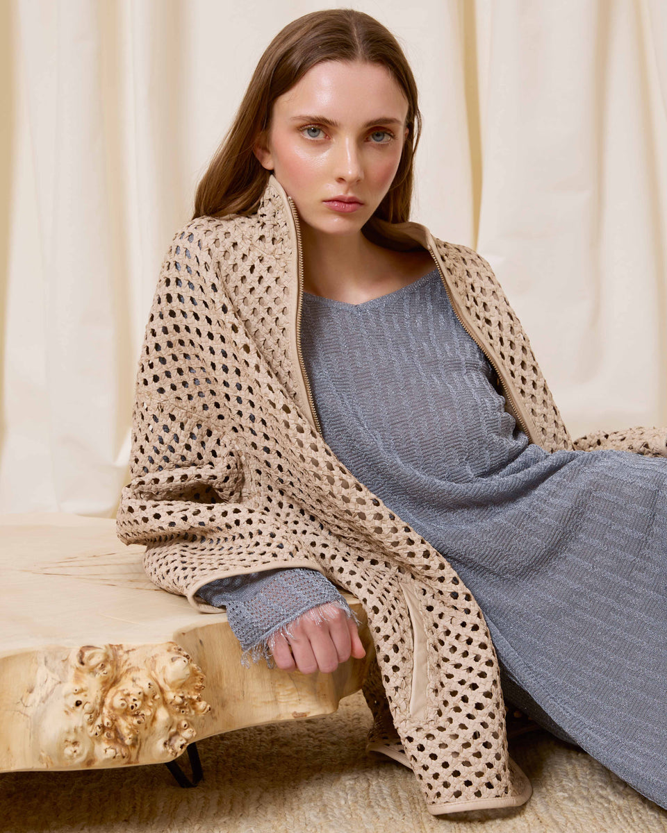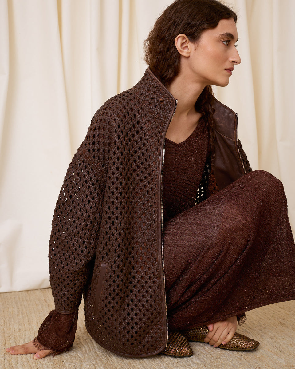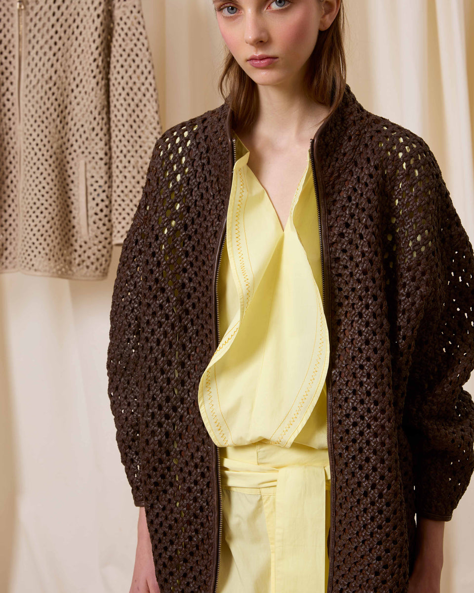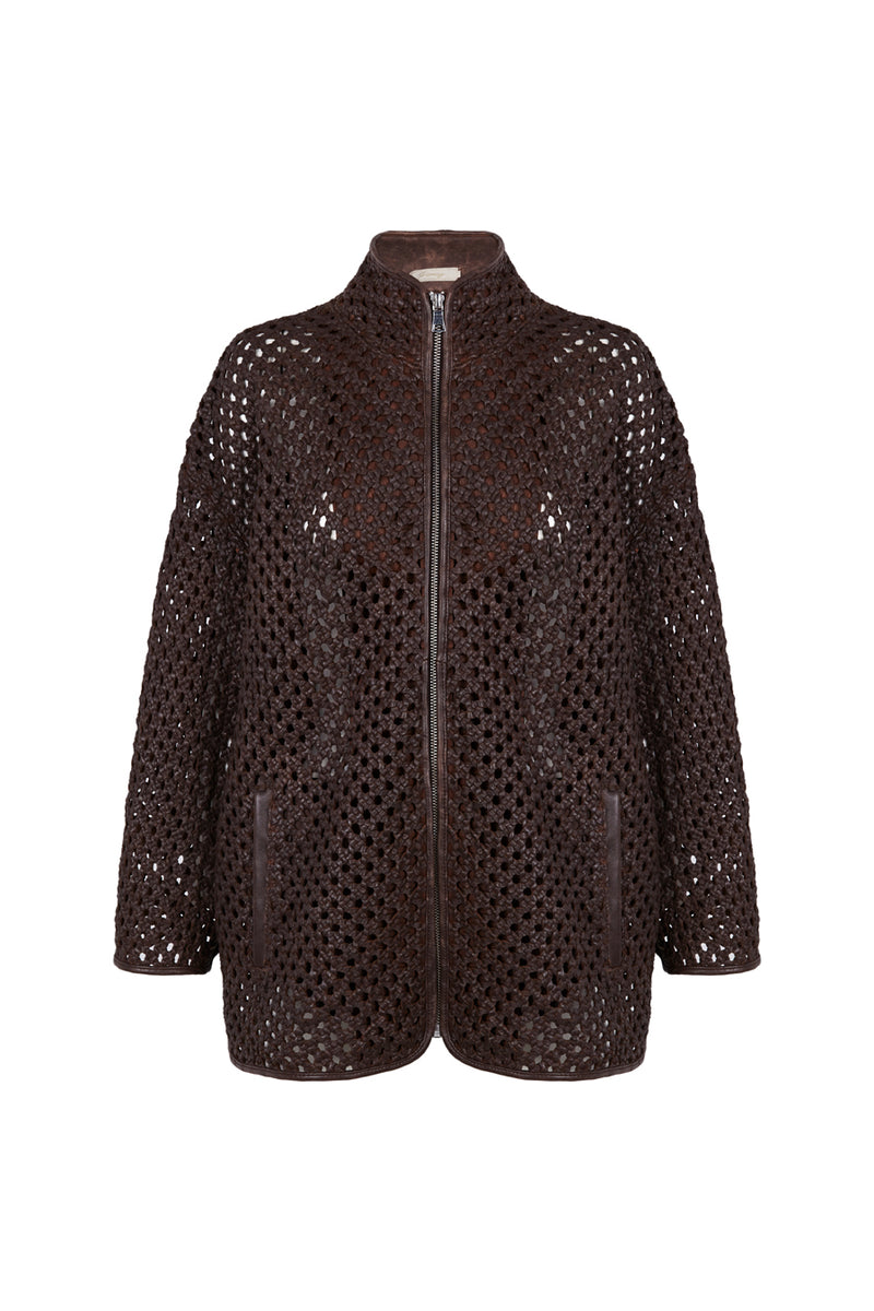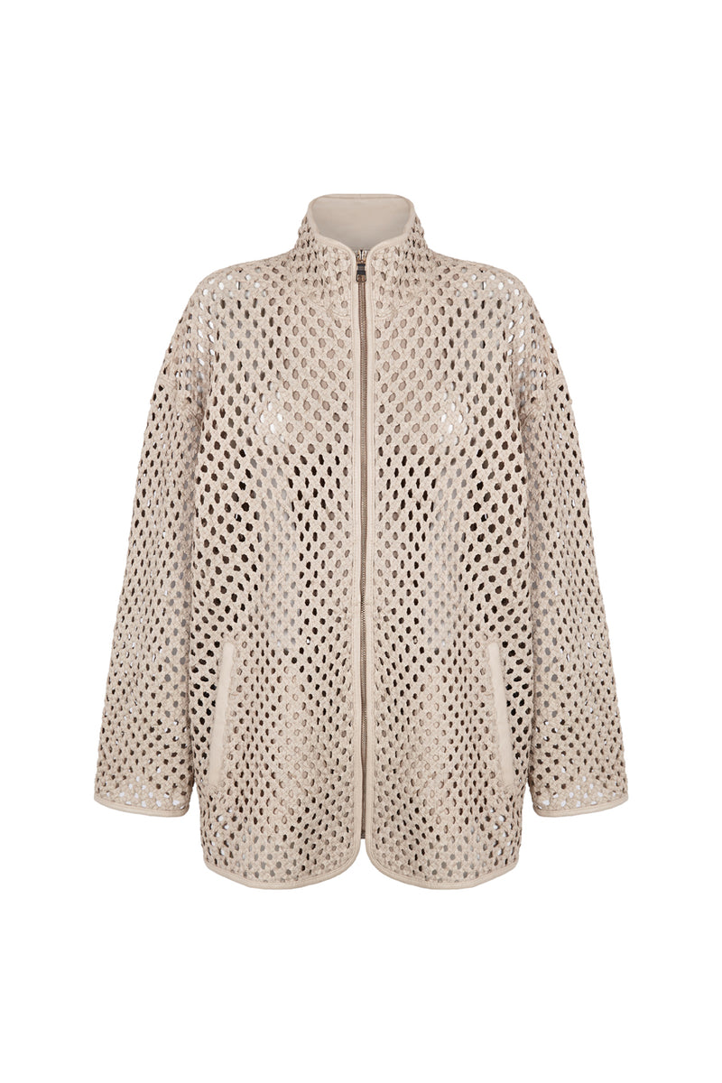 DESCRIPCIÓN: Cazadora de piel calada con bolsillos y cuello chimenea. Cierre mediante cremallera. COMPOSICIÓN: 100% Piel Cordero
