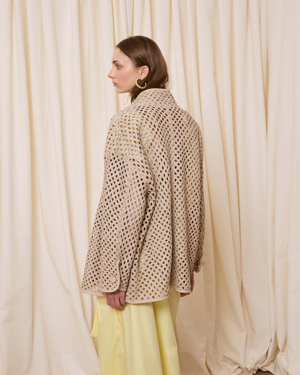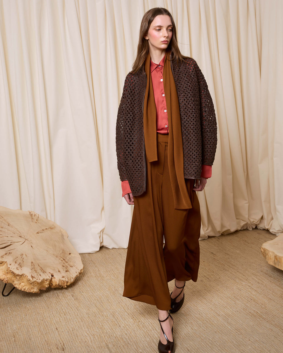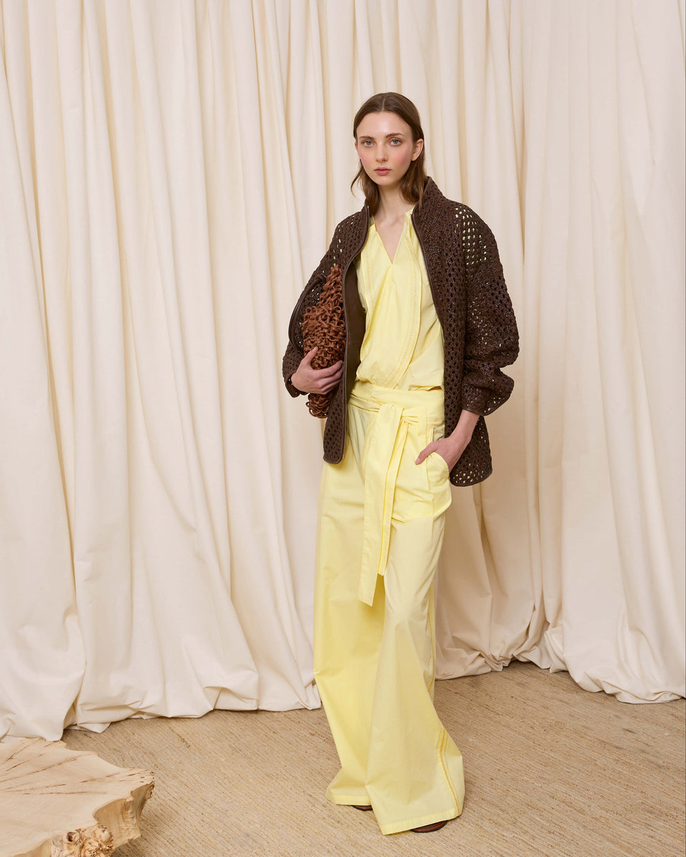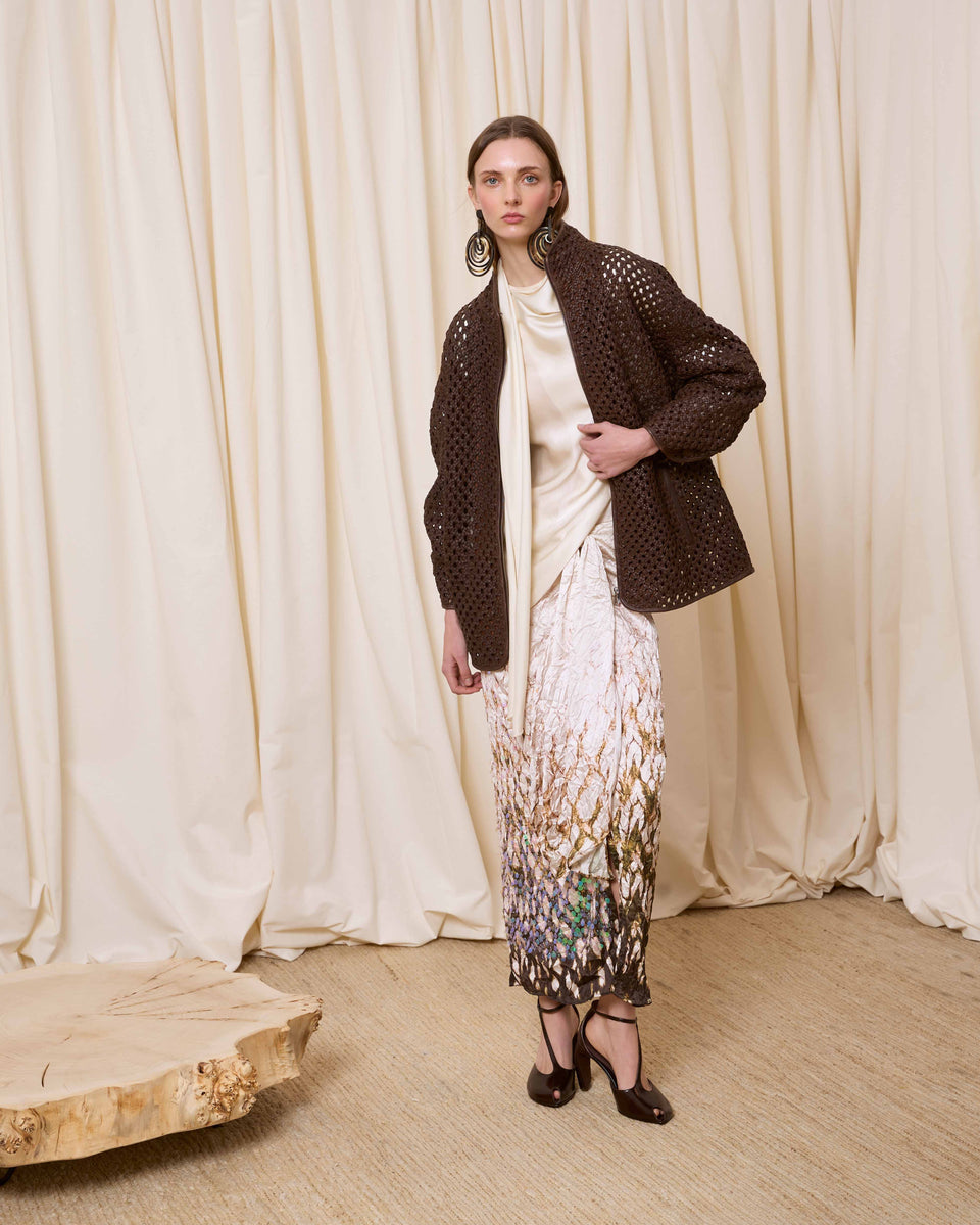 DESCRIPCIÓN: Cazadora de piel calada con bolsillos y cuello chimenea. Cierre mediante cremallera. COMPOSICIÓN: 100% Piel Cordero