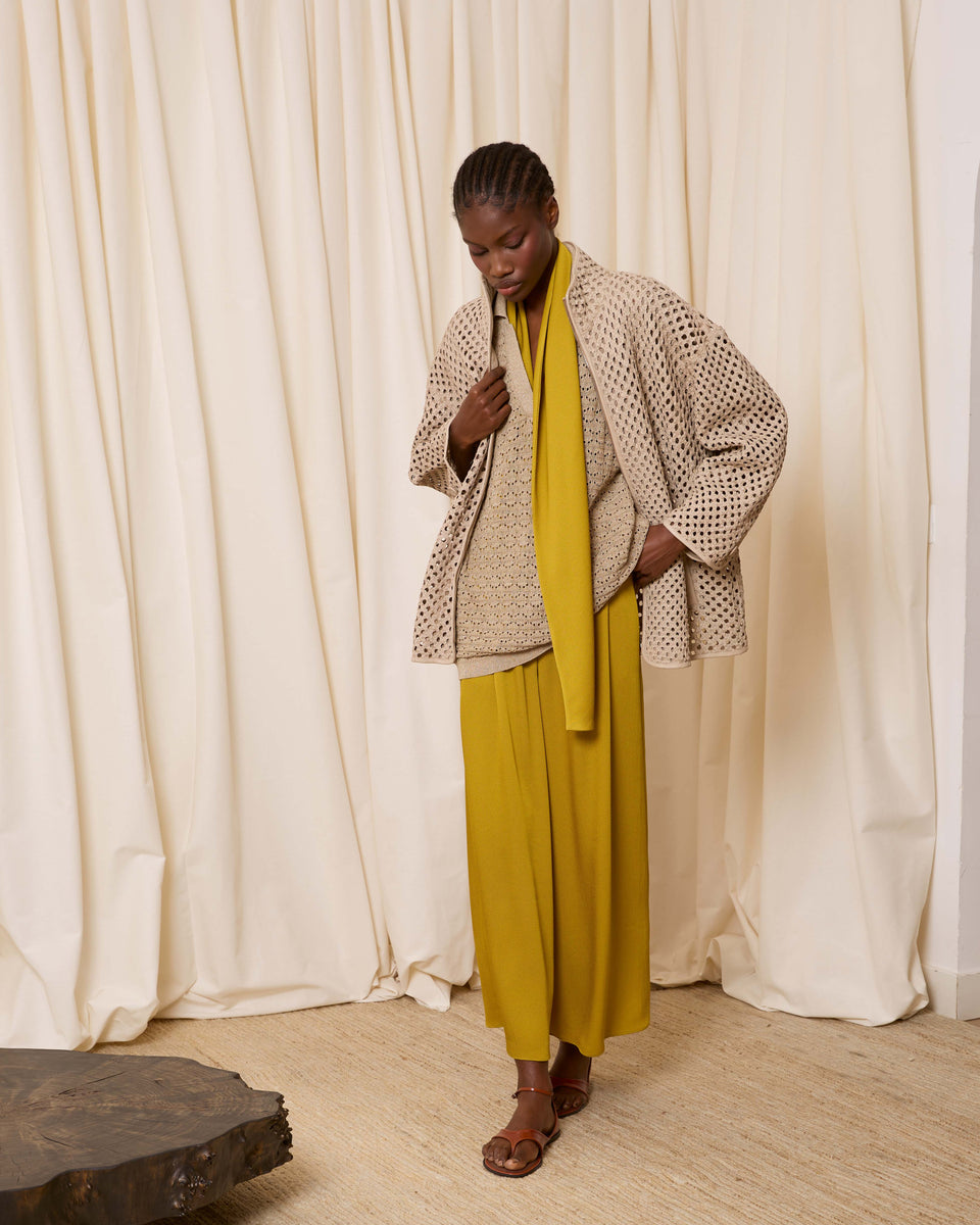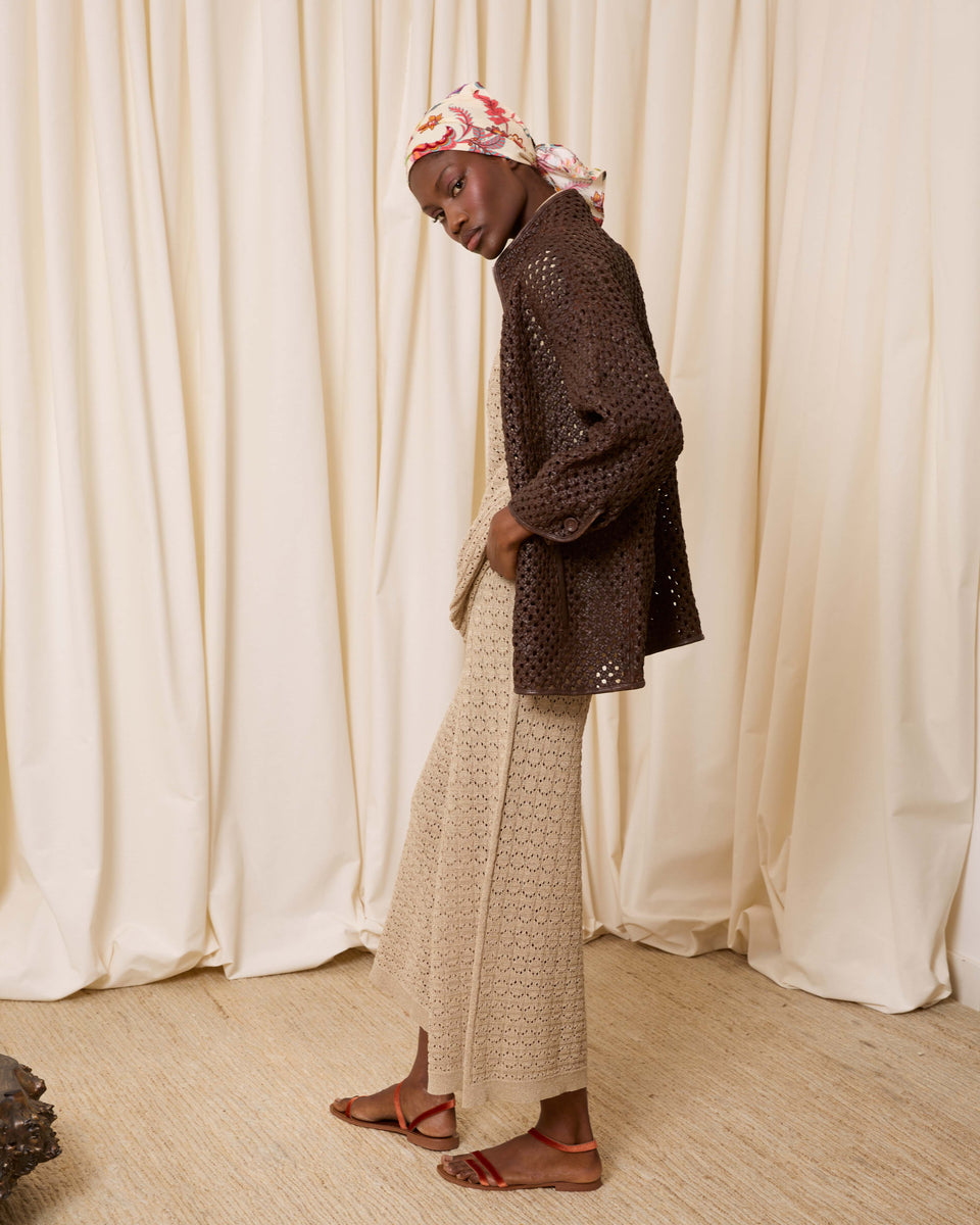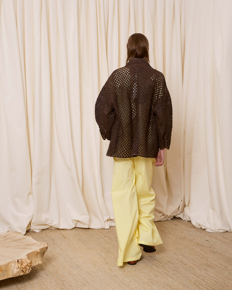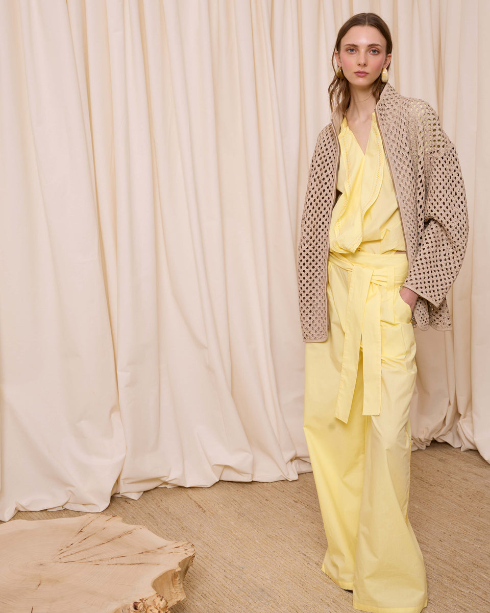 DESCRIPCIÓN: Cazadora de piel calada con bolsillos y cuello chimenea. Cierre mediante cremallera. COMPOSICIÓN: 100% Piel Cordero