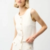 DESCRIPCIÓN: Diseñado con líneas limpias y textura agradable al tacto, este chaleco de bouclé presenta escote redondo y corte sin mangas. Los botones dorados en la parte delantera añaden un acabado refinado y llamativo. Tejido de bouclé. Escote redondo. Ribete de botones dorados en la parte delantera. Sin mangas. Con forro