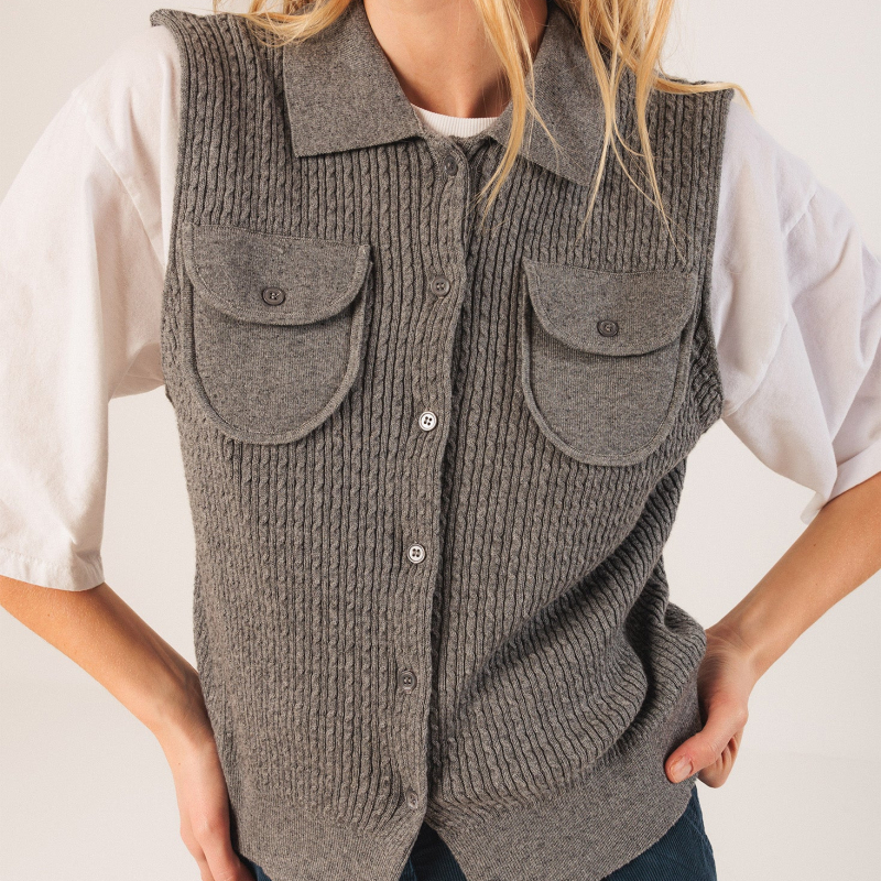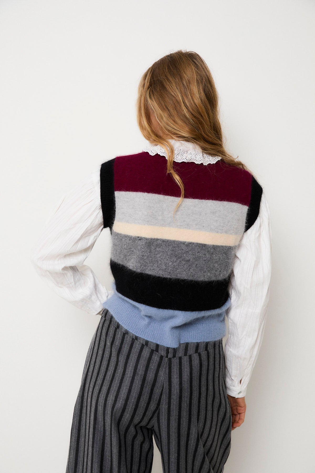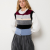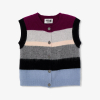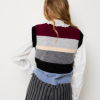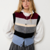 Composición: 50% LANA 30%CNYLON 20%CACRILICO. Descripción: Chaleco de punto en estampado de rayas multicolor. El diseño se completa con botones joya.