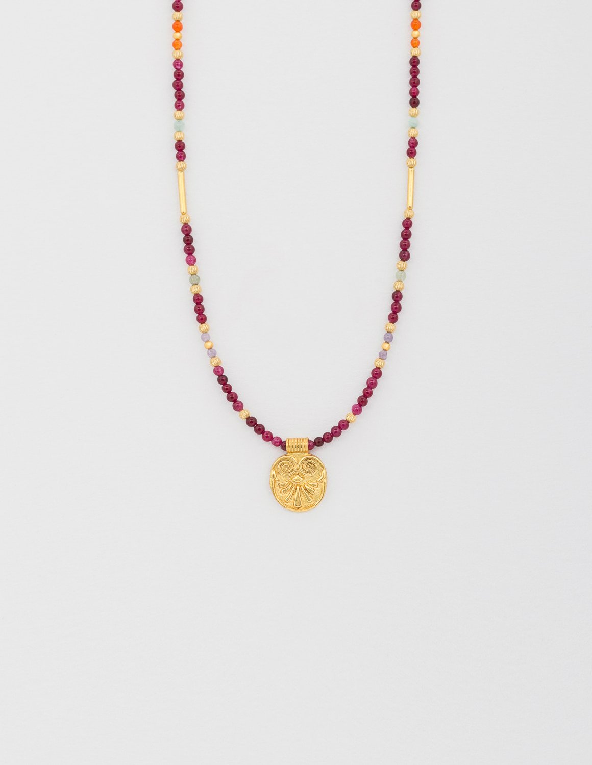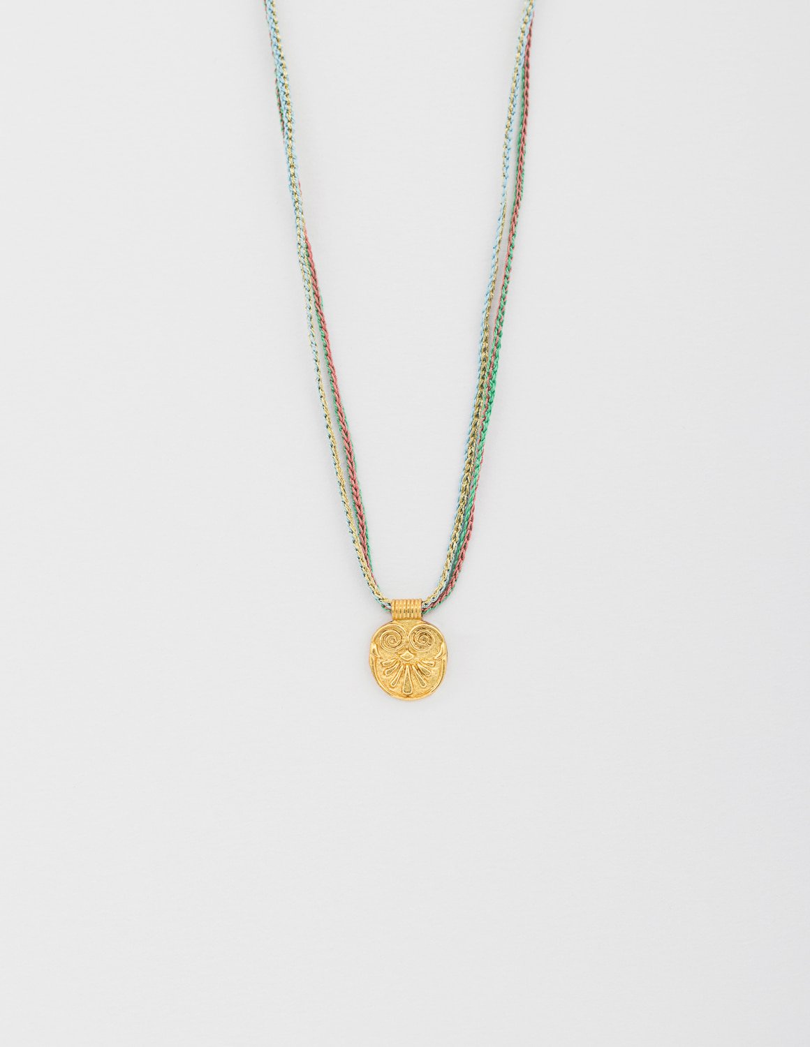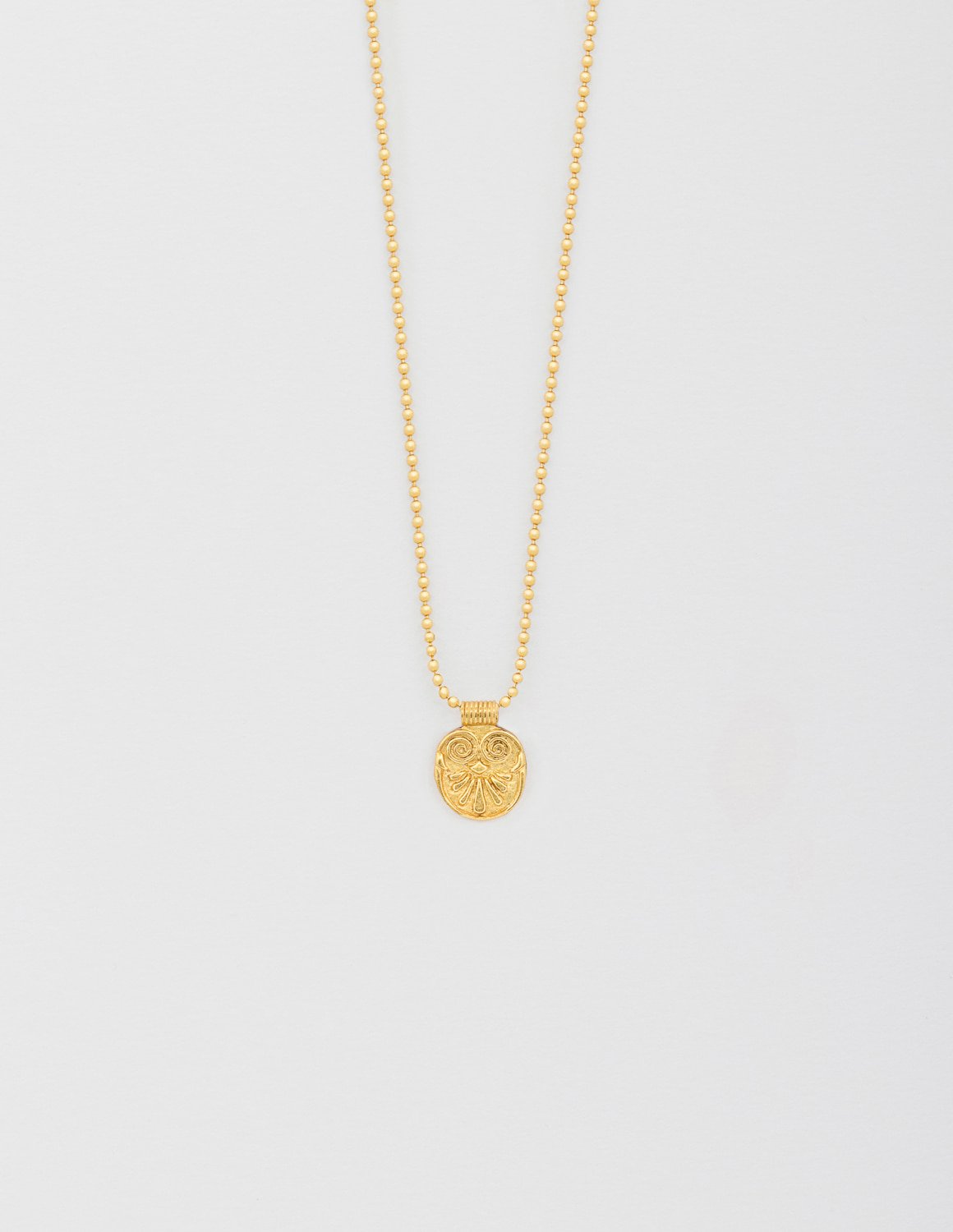 Colgante con palmeta en cuenco de volutas. Símbolo de la diosa Tanit con significado de renacimiento (s VI a.C.) Material: Latón con baño de oro. Dimensiones: 1,8 cm.