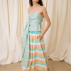 DESCRIPCIÓN: Top palabra de honor color celeste con gran lazada para anudar de diferentes maneras. COMPOSICIÓN: 85% Lyocell, 15% Poliéster Reciclado