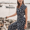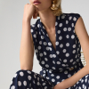 DESCRIPCIÓN: Divertido a la par que elegante, este top cruzado de georgette está adornado con puntos delicados. Un dobladillo peplum favorece la cintura, mientras que los botones abstractos de oro y una parte trasera elástica añaden un toque de fantasía y comodidad.