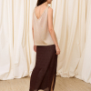 DESCRIPCIÓN: Top de escote pico en de tirantes con adorno de nudos en los hombros con fibra metalizada en color dorado. COMPOSICIÓN: 87% Viscosa, 13% Hilo Metalizado.