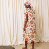DESCRIPCIÓN: Vestido de manga corta, cuello caja y largo midi ligeramente evasé confeccionado en tejido de algodón con estampado floral salpicado de lentejuelas. COMPOSICIÓN: 100% Algodón