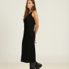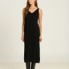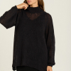 Vestido de punto menguado de dos piezas. Vestido interior de rayón viscosa 100% con tirantes anchos y escote delante y detrás. Sobre él, jersey oversize de cuello alto en punto liso suave y tejido abierto, que crea transparencias y puños abullonados. Hecho en Igualada con hilo de origen italiano. Composición: Made in Igualada 53% Alpaca – 33% Poliamida – 14% Lana Virgen.
